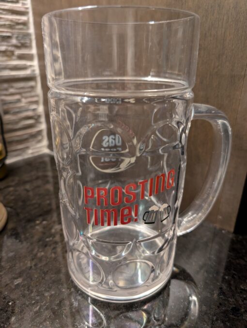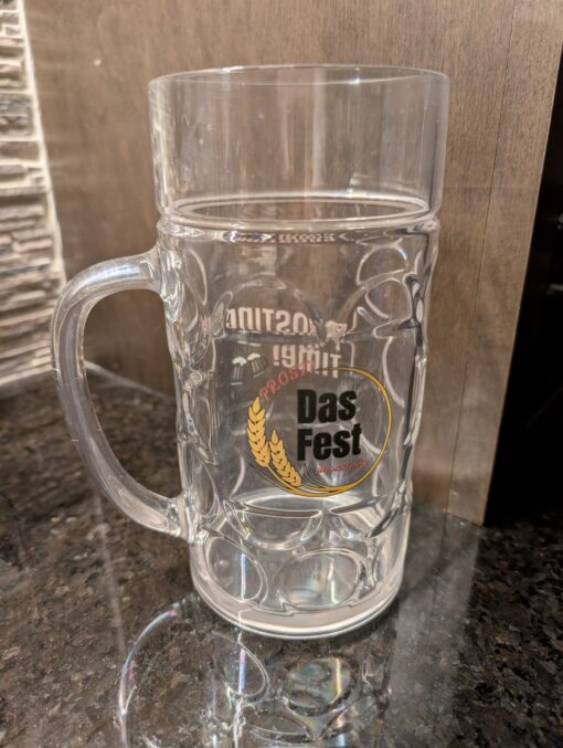 One liter souvenir mug (plastic) with Das Fest and Prosting Time logos